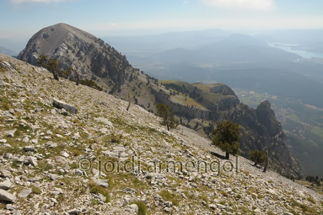 Les vistes de la Tuca, el pic a la dreta de la Penya són veritablement maques però l'última pendent està posant a prova ja la resistència de les nostres cames, portem ja unes quantes hores caminant...